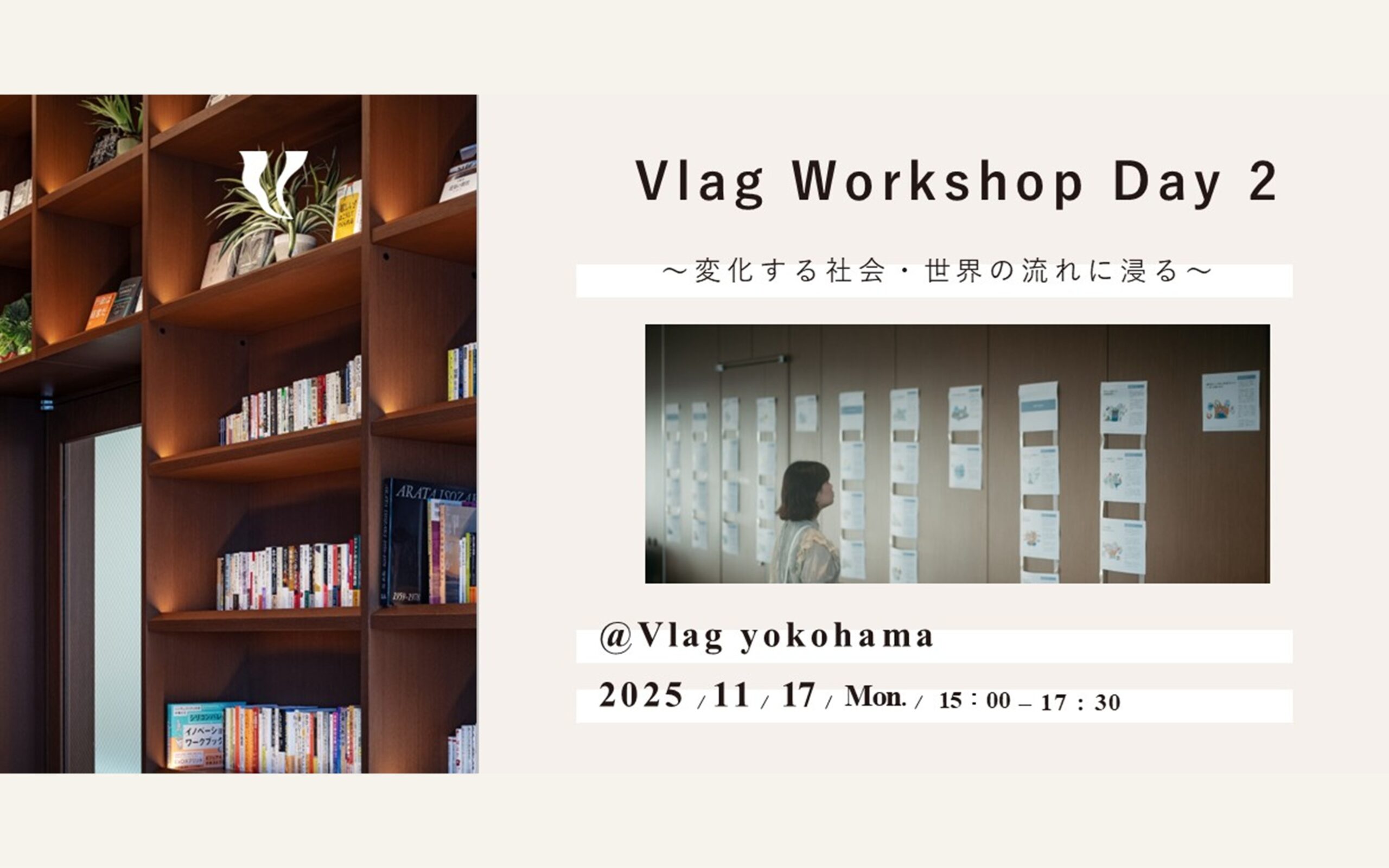Vlag Workshop Day 2 ~変化する社会・世界の流れに浸る~【11/17(mon.)】 ホール&スタジオ 開催日 2025.11.17 時間 15:00 - 17:30 2025.09.08 終了 View More
